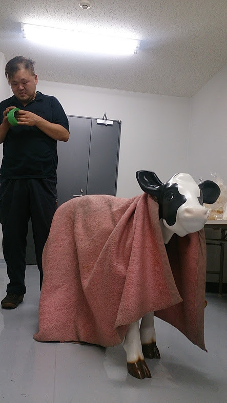 子牛さんもしっかり傷付けないように、毛布で保護させて頂きました。