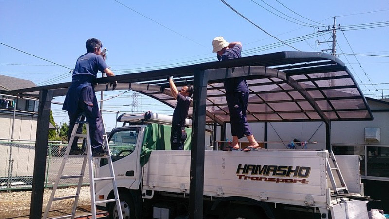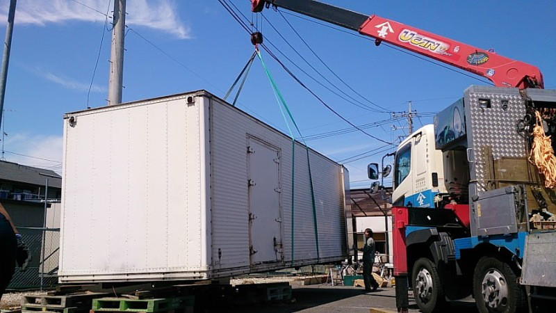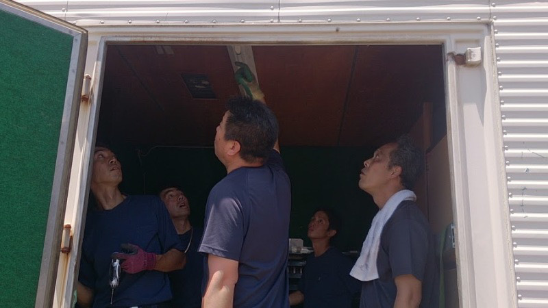一日がかりで皆で屋根の取り外しとコンテナの向きを変える作業をしました