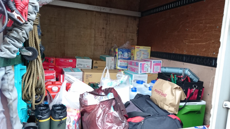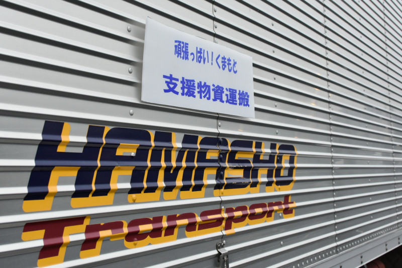 熊本に入り、出会った方に作って頂いたと言う支援物資運搬の看板。