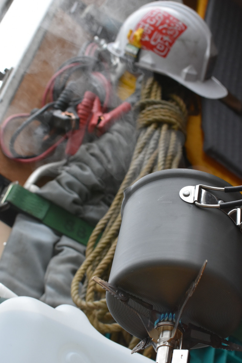福山さんと差間さんが帰ってきた車両の運搬具を確認し、