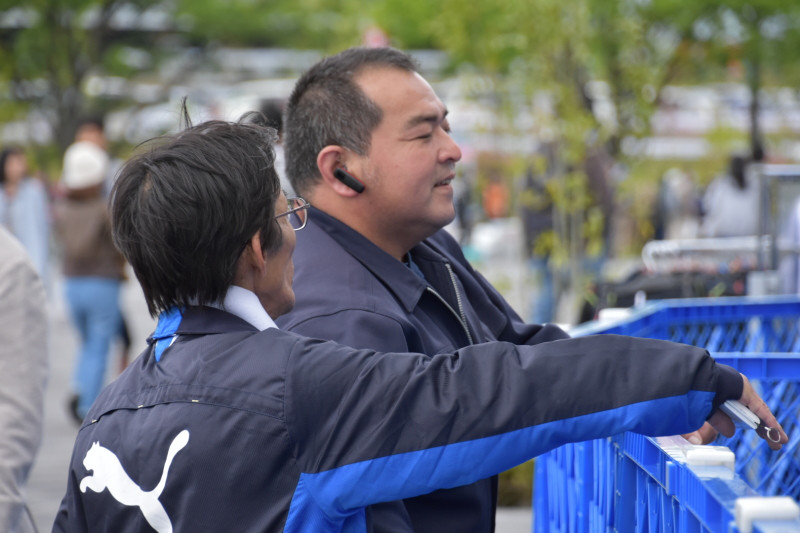 「ピッチと客席が近く とても良い競技場です」と社長。