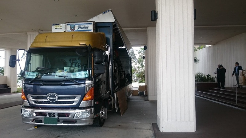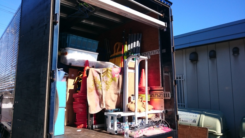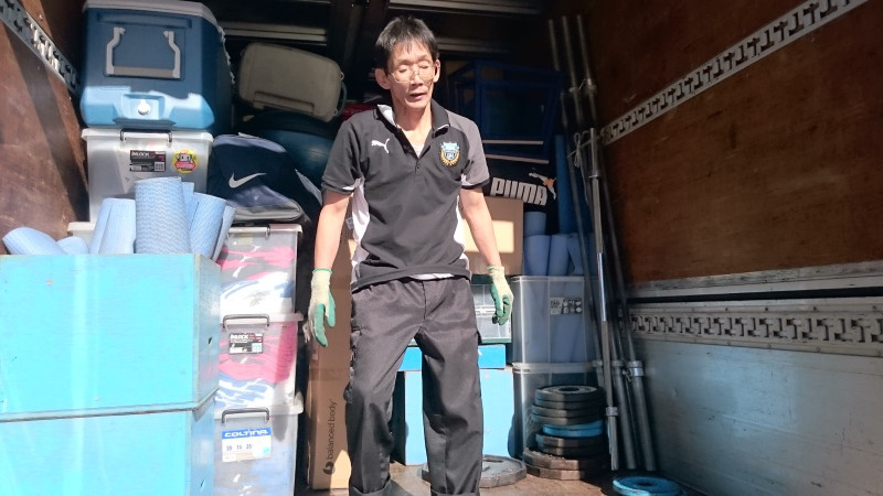 外に出して頂いている選手の大切なお荷物を積込み致します!