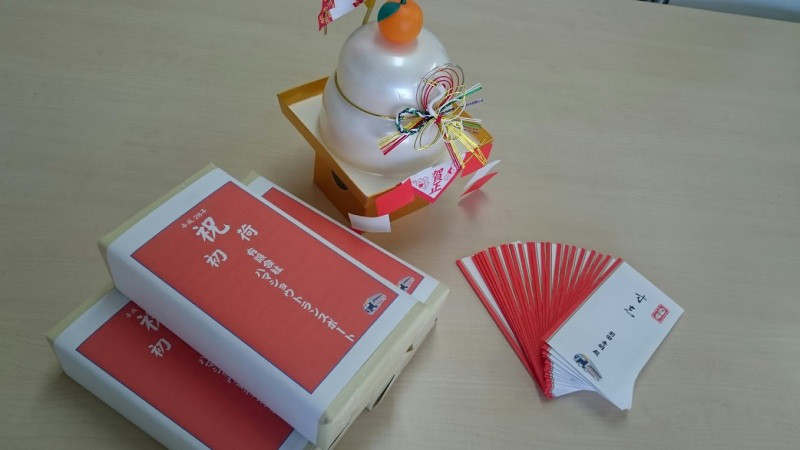 初荷祝いの紅白まんじゅうと鏡餅♪