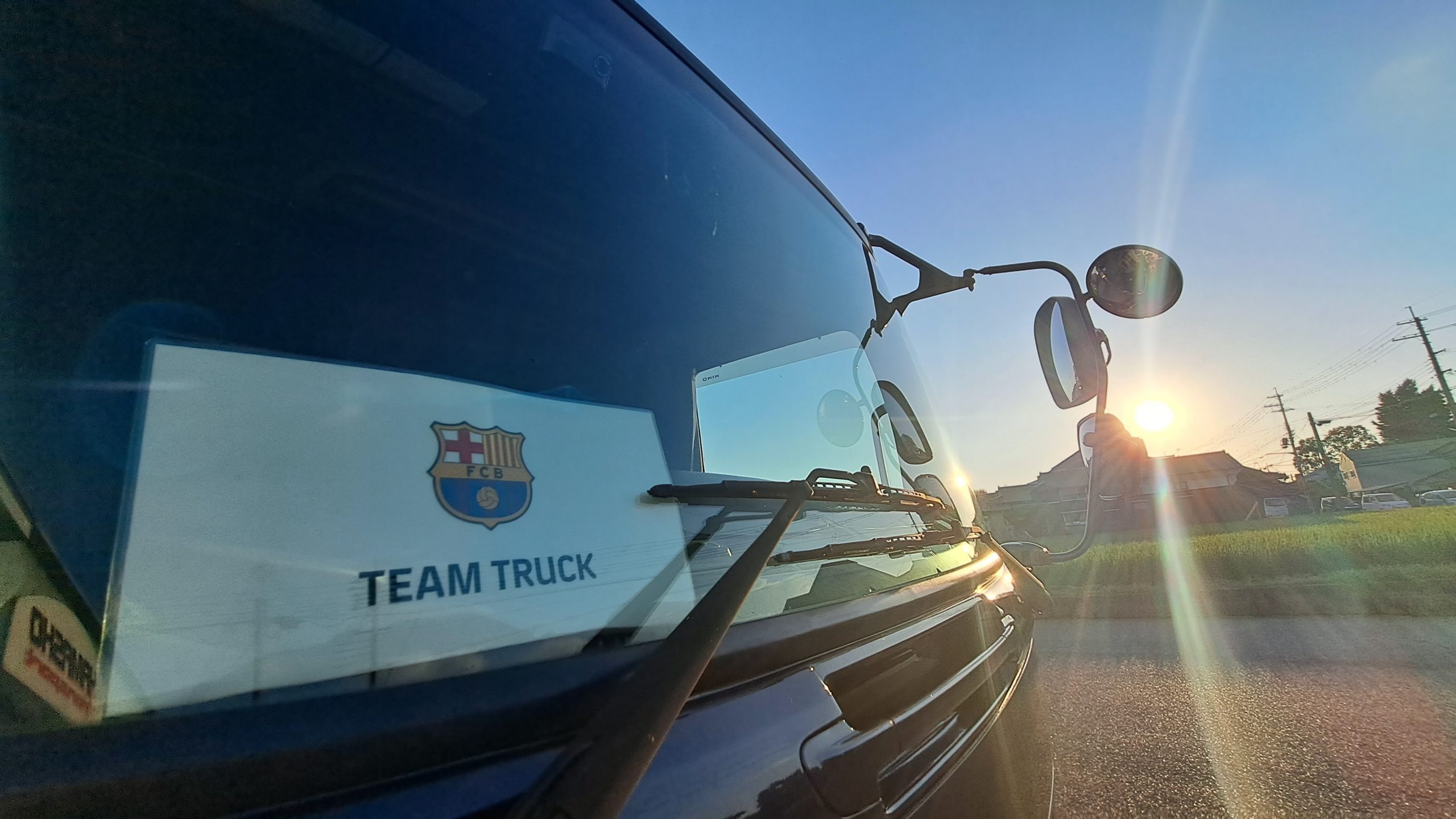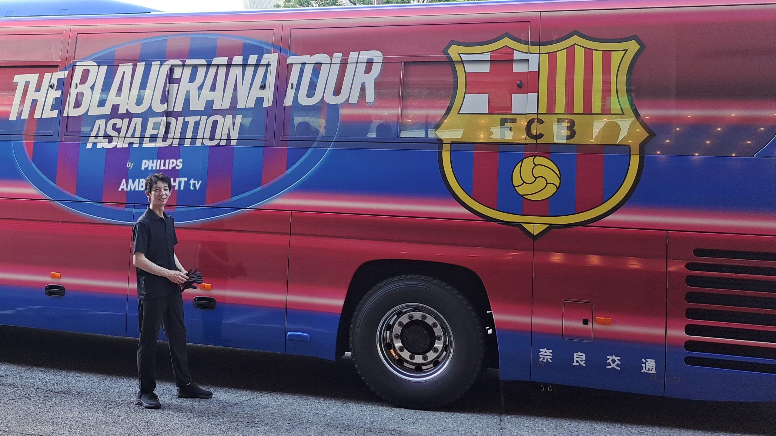 さらに、当日ドライバーを担当した渡辺くんは、FCバルセロナのラッピングバスを目の前にして