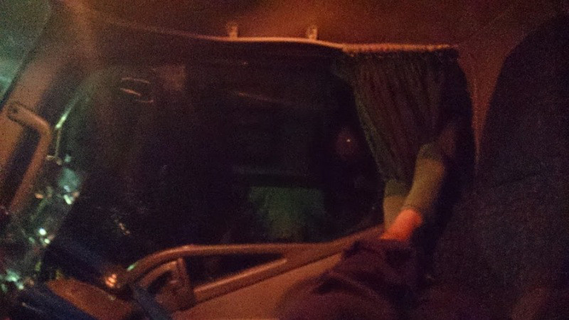 「2トンで車中泊したんだから許せ!カーテンしたよー!」と(笑)