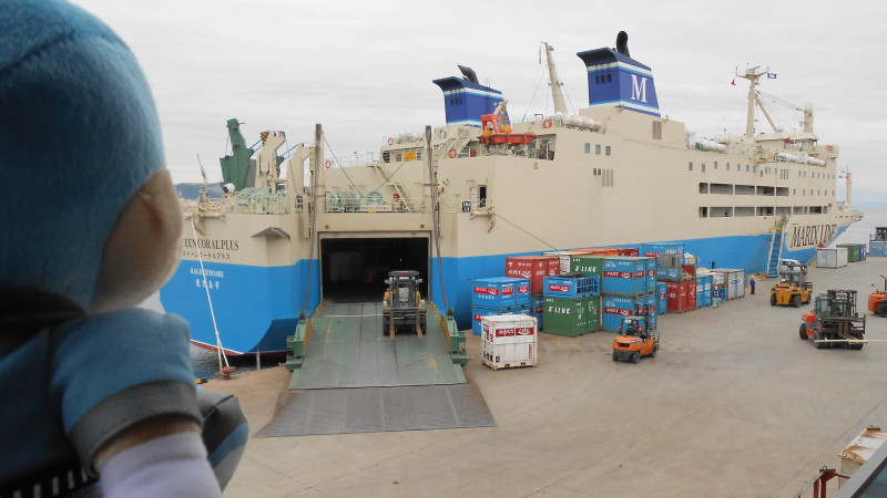 フロンタくん、船からの搬出を見学中♪