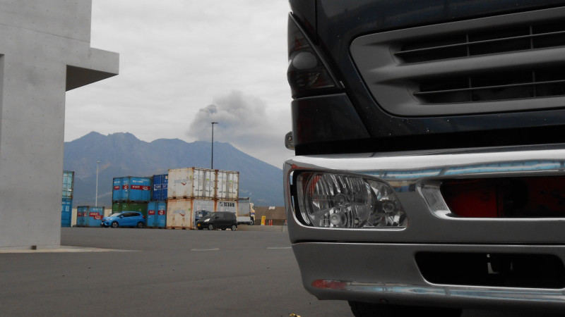 桜島の噴火をバックに~~