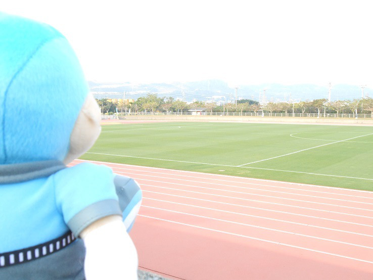 グランドを見つめるフロン太くん♪