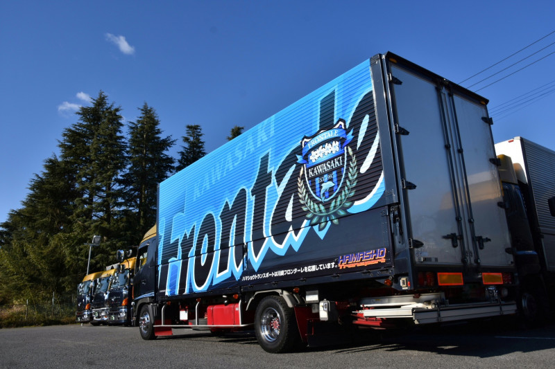 フロンターレの看板を背負っている。ハマショウを代表してフロンターレのチームの一員として安全に、そして丁寧に、そしてそして確実にチームの大切な荷物を運びたいと思います。 フロンターレの試合や合宿で日本全国沢山の街を駆け抜けることが出来る年となりますように。